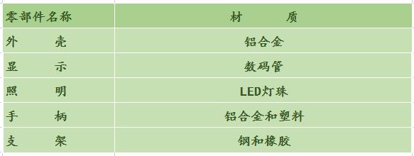 全機(jī)零部件均采用標(biāo)準(zhǔn)化和軍工等級標(biāo)準(zhǔn)生產(chǎn)、加工,質(zhì)量一致性好,零部件品質(zhì)有保證;產(chǎn)品采用紅色數(shù)碼管顯示方式,即使強(qiáng)光下,參數(shù)顯示依然清晰;內(nèi)部自帶LED燈珠,亮度高,1W的功率可照明時間更長;產(chǎn)品外置接口豐富,可供16.8V,5V標(biāo)準(zhǔn)設(shè)備和裝置使用;產(chǎn)品的傳動部分全部采用高強(qiáng)度合金材料和高分子材料,使用溫度范圍廣,使用壽命長;機(jī)身外圍使用耐老化、防水密封材料密封,配合全機(jī)身輕質(zhì)鋁合金外殼,防水、防塵、耐老化、抗沖擊,防水等級可達(dá)IP67;