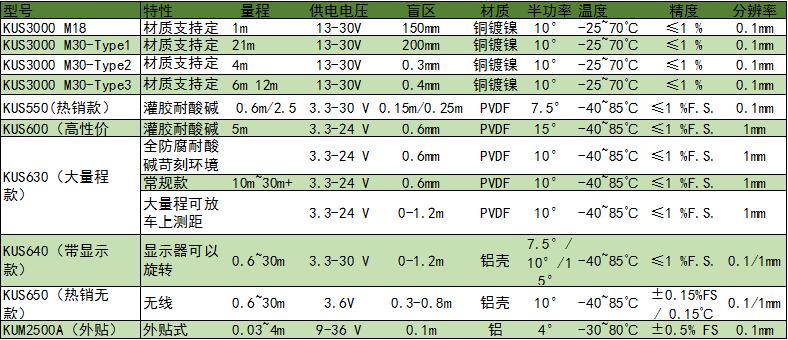 超聲波液位計選型表