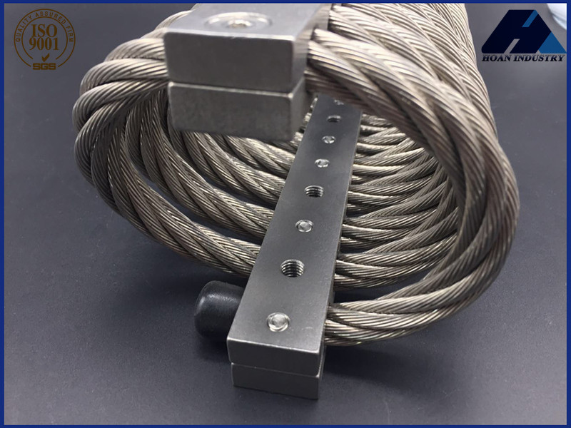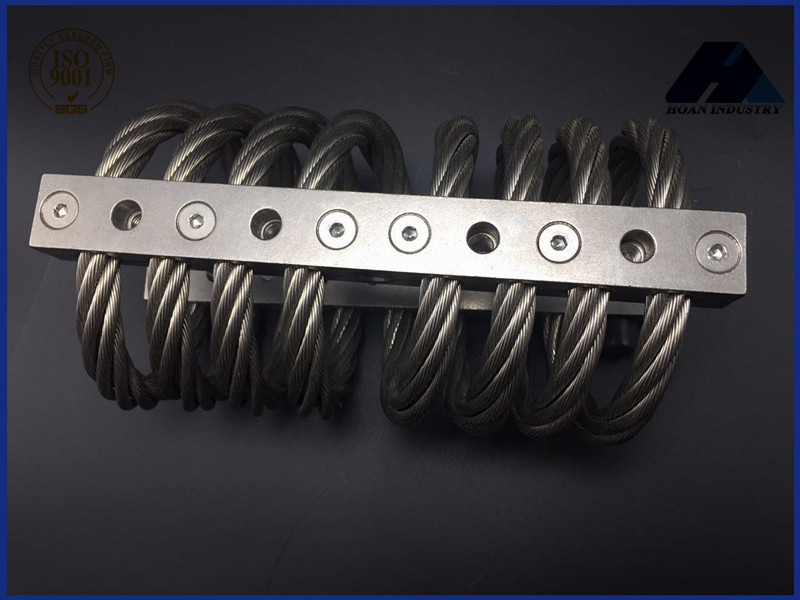 鋼絲繩隔振器是由鋼絲繩繞成螺旋狀并固定在沿螺母布置的兩塊金屬板之間制作而成的,它的剛度與阻尼取決于鋼絲繩的直徑、股數(shù)、圈數(shù)及纏繞方式和尺寸.它是一種具有非線性特性和干摩擦阻尼的新型隔振器,采用多股鋼絲按一定方向纏繞而成的鋼絲繩作為彈性元件,具有明顯的遲滯特性,其能量耗散來(lái)源于鋼絲間的摩擦、擠壓、滑移。